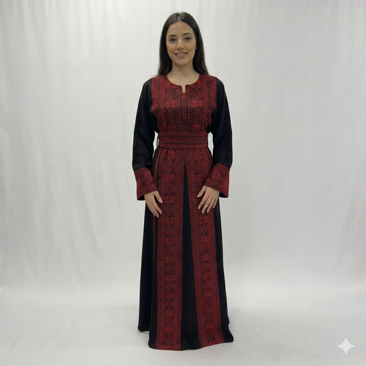 Traditional Palestinian Embroidered Thobe - Black with Red or Beige Detail