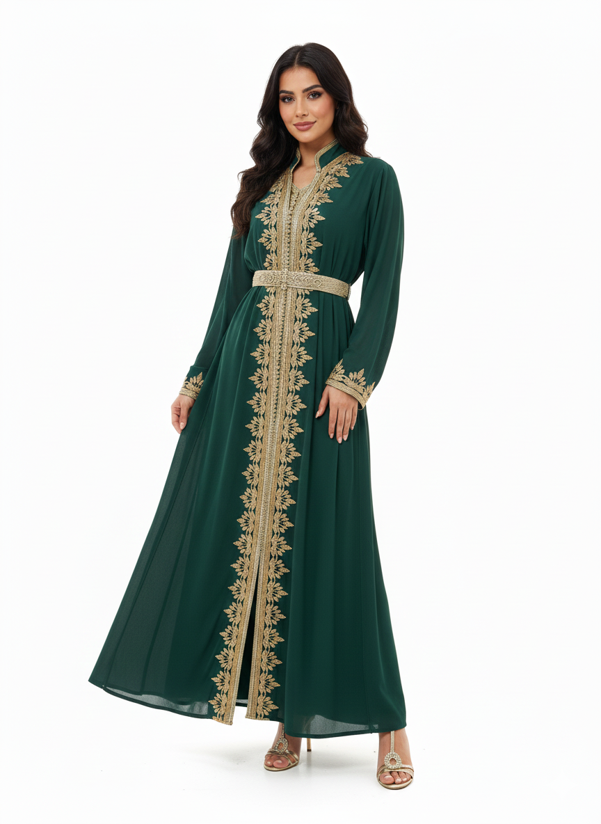 Our 2-piece abaya set features a classic open abaya paired with a matching sleeveless inner slip dress. It’s a customer favorite for its versatility, elegant design, and comfort.