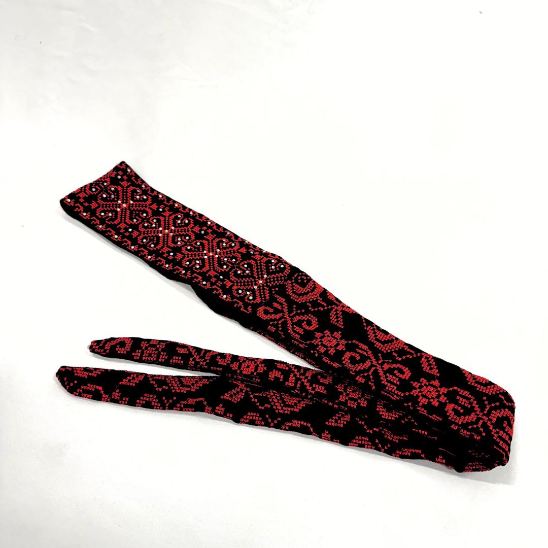 Traditional red Palestinian tatreez embroidery