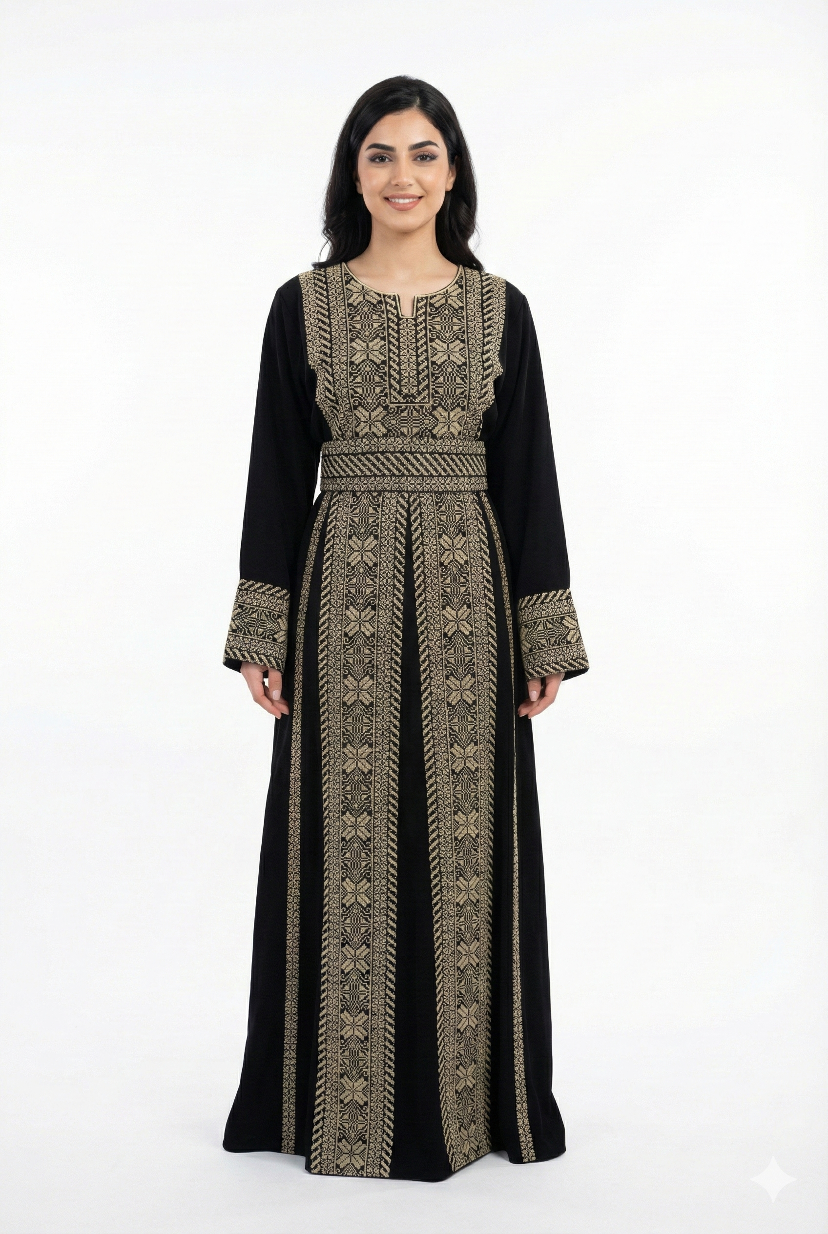 Embrace the timeless beauty of cultural tradition with our Embroidered Traditional Palestinian Dress. Designed for the modern Arab woman who values her roots, this floor-length Thobe combines authentic aesthetics with contemporary comfort.