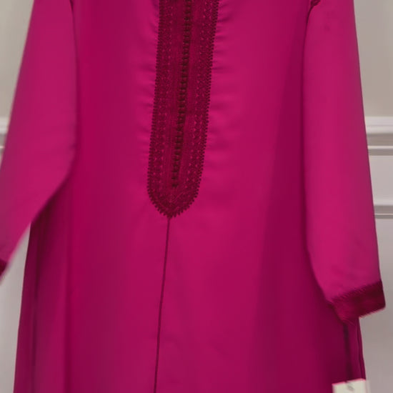 Embrace the elegance of Moroccan tradition with this handmade djellaba (جلابية مغربية مصنوعة يدويا) for women. Available in a vibrant fuchsia color, this dress combines traditional craftsmanship with modern comfort, making it perfect for various occasions.